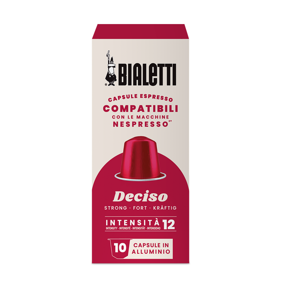 The boldest expression in Bialetti's Nespresso-compatible range. Dark-roasted to perfection, these Italian coffee capsules reveal intense toasted bread and rich cocoa characteristics. Made for those who like their espresso with oomph!